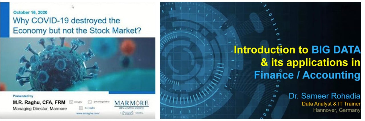 With COVID-19 in progress, IMA’s Kuwait Chapter team has been focused on web-based events to ensure continued communication with IMA® (Institute of Management Accountants) members in the country and beyond. Topics and speakers were carefully selected to ensure a successful representation of trending topics that have a direct impact on the profession. The last quarter saw the chapter focus on pandemic-related topics and also expand into the impact of technology on the finance and accounting profession. As such, M. R. Raghu – currently head of research at Kuwait Financial Center (Markaz), a leading asset management company based in Kuwait with AUM exceeding $3B; the managing director of Marmore Mena Intelligence, a research subsidiary of Markaz; and an active member of the finance and accounting profession – joined our Kuwait Chapter for a highly informative session that explored how the stock market was spared from the negative impact of the pandemic. The chapter also engaged Dr. Sameer Rohadia – a finance specialist and holder of multiple degrees, including a Doctorate in ERP Implementation – to discuss Big Data and ways to integrate it effectively into the finance and accounting function.